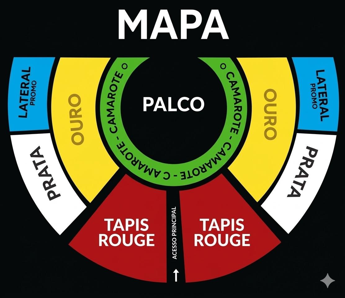 • O ingresso do tipo SETOR TAPIS ROUGE pode ter seu utilizador alterado até 1x no prazo máximo de 2h antes do início do evento.