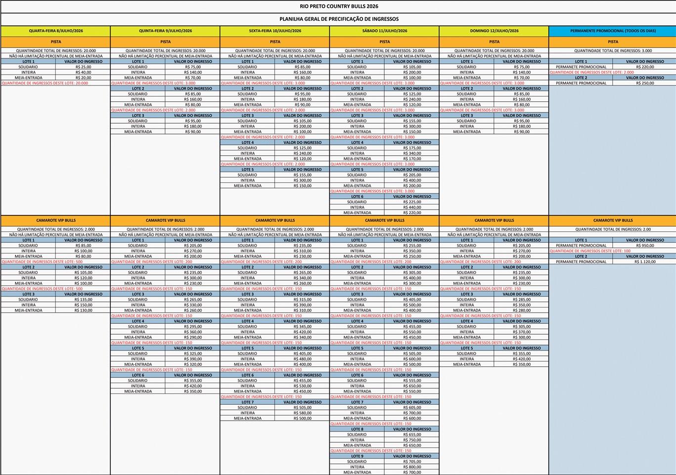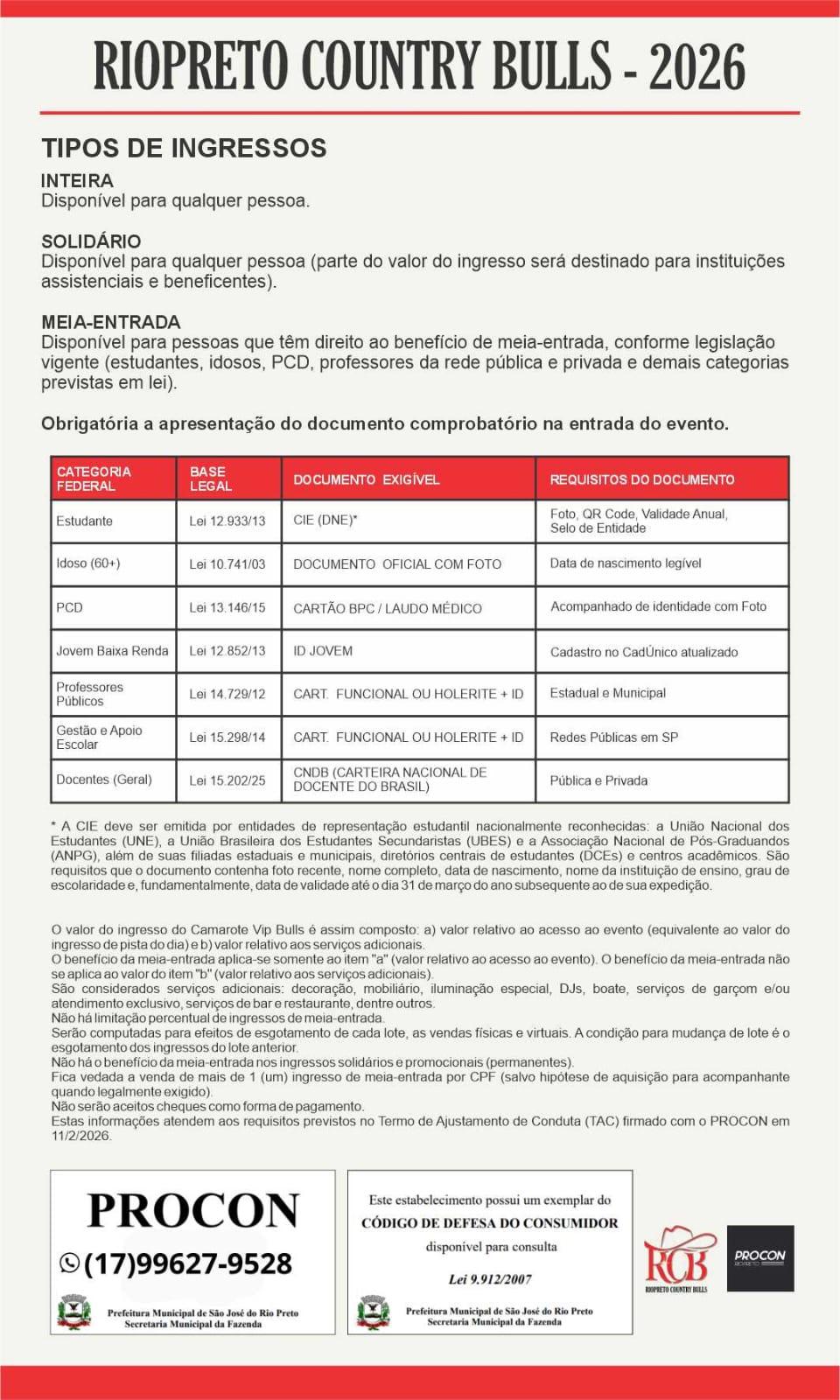 - Os Ingressos desta oferta são referentes à Rio Preto Country Bulls 2026